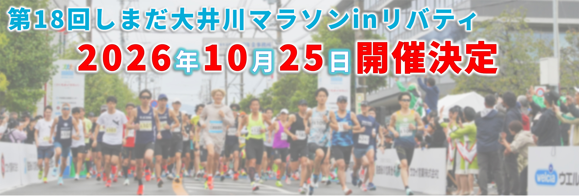 第18回しまだ大井川マラソンinリバティ、大会開催日&エントリー開始日が決定しました! 【大会開催日】 令和8年10月25日(日) 【エントリー開始日】 (島田市民先行枠)令和8年4月20日(月)~ (一般枠・ふるさと納税枠)令和8年...