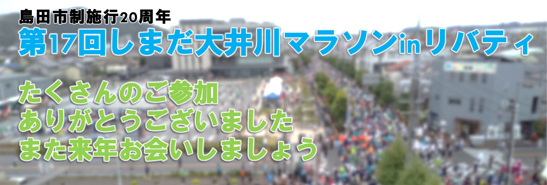 第17回しまだ大井川マラソンinリバティにご参加いただきありがとうございました! 第17回しまだ大井川マラソンinリバティの来場者ウェブアンケートを実施します! ランナー、応援者、会場に遊びに来た方、どなたでも参加できます。今後の大会...